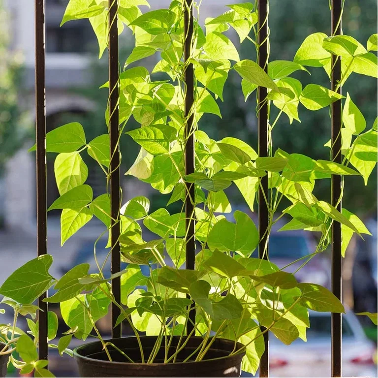 Climbing and climbing plants provide a lot of greenery without occupying a lot of space on the ground. They are therefore perfect for the balcony or terrace. And whether you want to grow flowers, leaves, or even vegetables, there are many fantastic options to choose from.,Climbing plants are practical in many ways, they can provide shelter from the wind, limit visibility, or protect against the sun. It all depends on the plant and, of course, the trellis or support you choose to plant it by.,Today, there are many types of trellises to choose from, but you can also let the plants wind around simple threads that you attach to the ceiling or get the plants to climb on the railing or a fence. If you choose a trellis, it is wise to choose a variant that looks nice even without plants, especially if you do not choose evergreen plants.,It is best if the plants receive good support from the start, as they will then know where they are going and climb more beautifully.