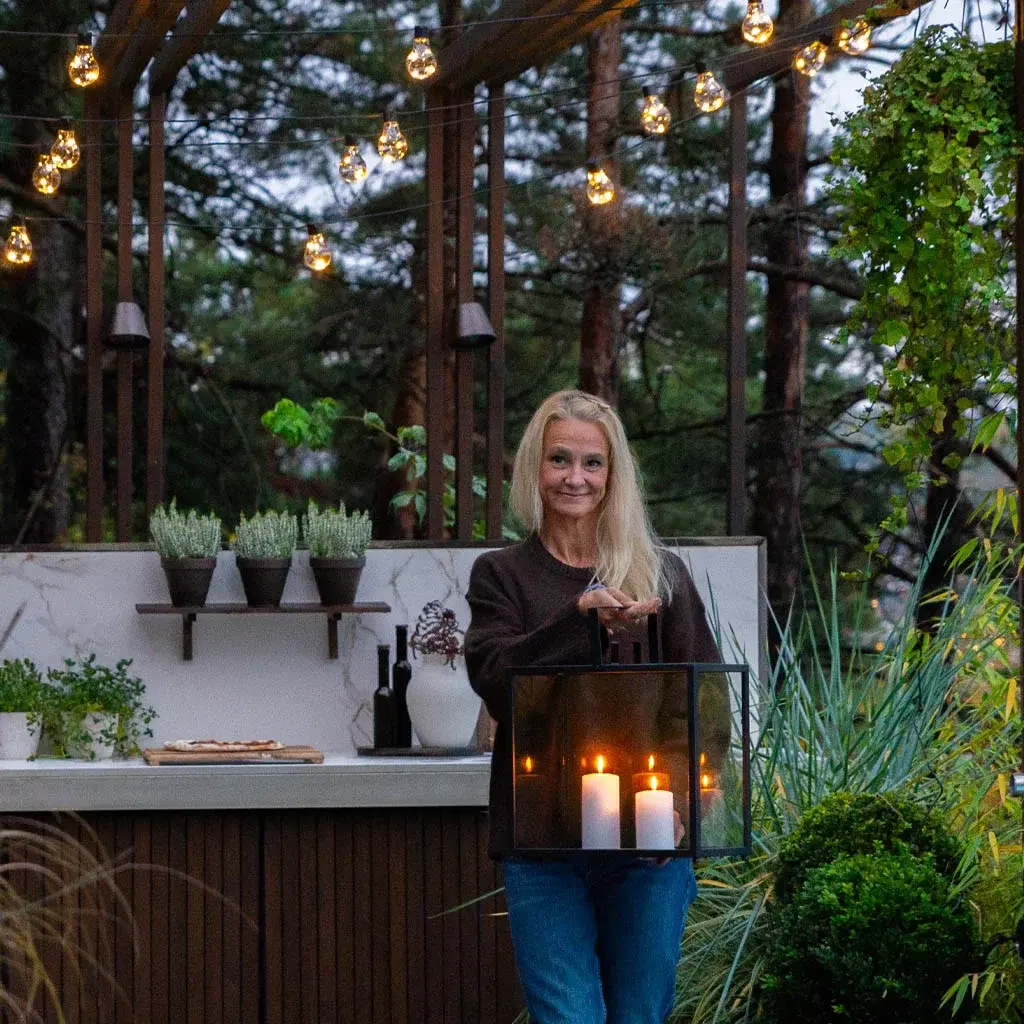 – I’m an advocate for using the garden all year round. In the autumn, I love watching how the colors change from day to day. Lighting is one of the things that adds extra decorative value, creates a magical atmosphere, and helps extend the outdoor season as long as possible. There’s something truly special when dusk and the blue hour arrive in autumn here in the Nordic countries, says Hanne.