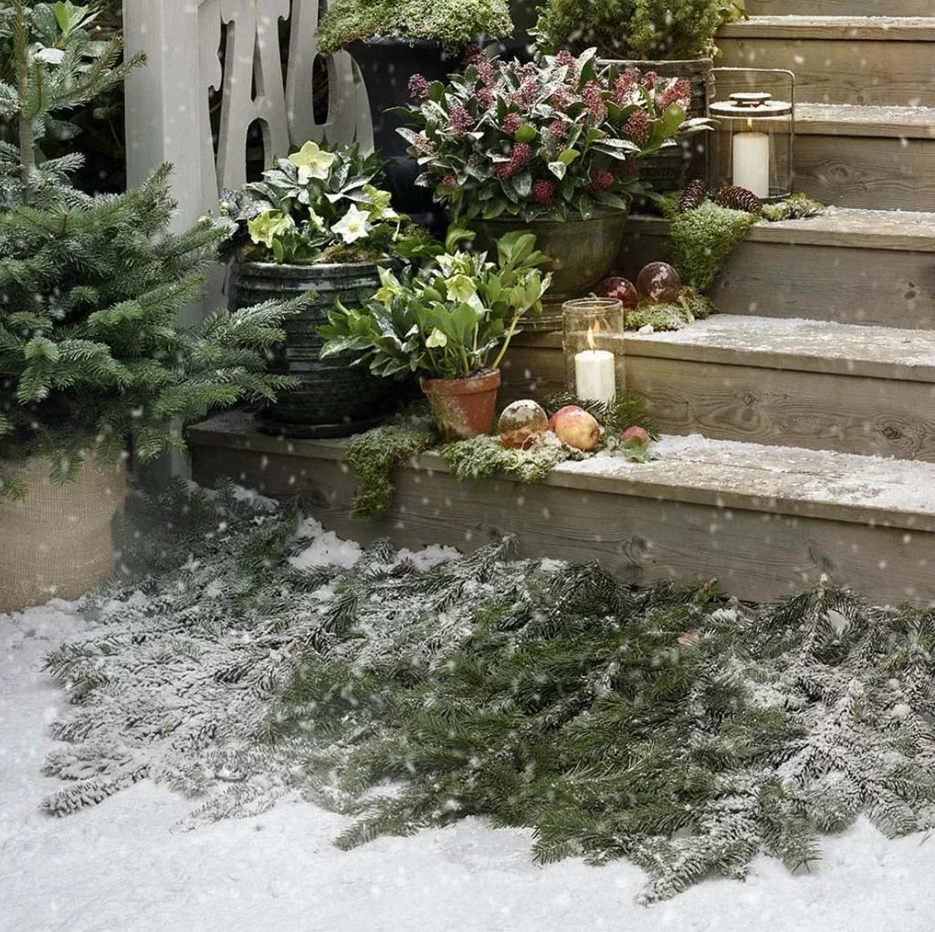 Welcome your guests with an entrance framed by bar plants. There are loads of different shapes and sizes to choose from, and they stay nice throughout the winter.
