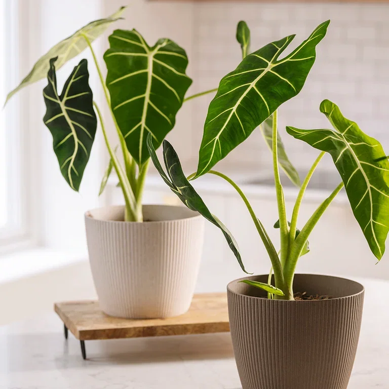 Are you looking for a tropical and trendy addition to your home, you should definitely consider Alocasia. You can get it in a wide range of varieties, all with large and decorative leaves. Many also have prominent leaf veins that create beautiful patterns.