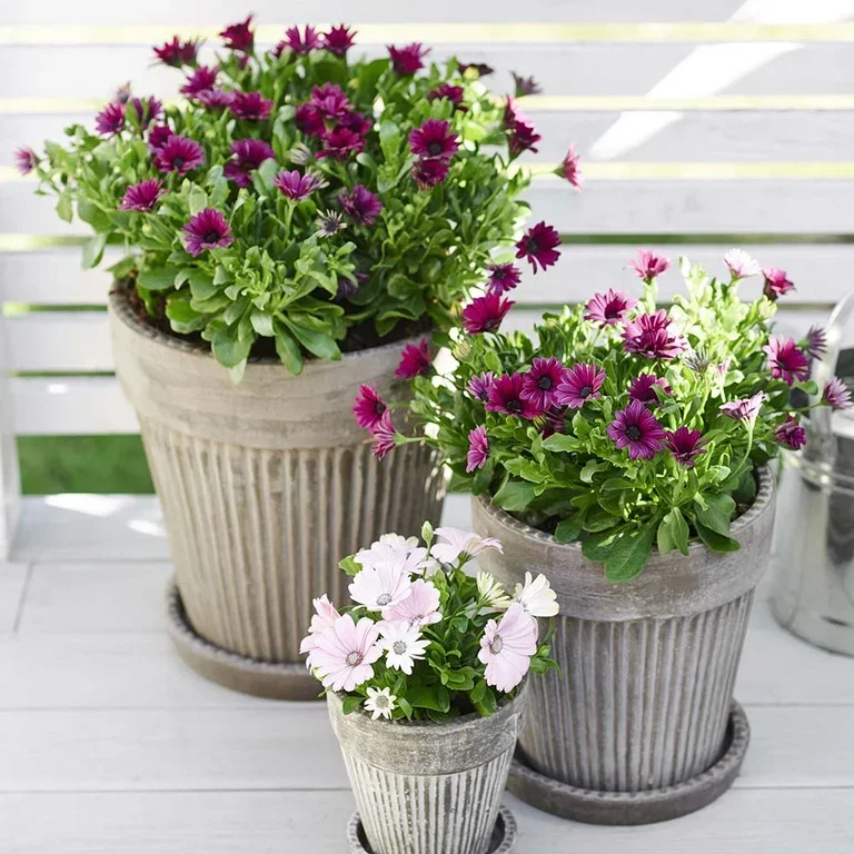 The colorful Spanish marguerite is a relatively new favorite and plant for pots and balcony boxes. They brighten up with their lovely colors and thrive when they get plenty of sun. The Spanish marguerite blooms from spring well into autumn.