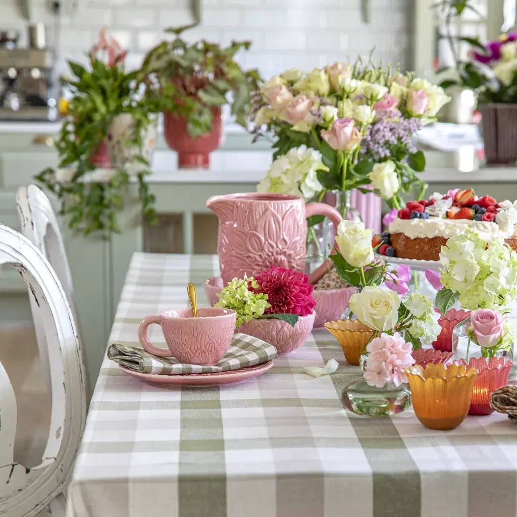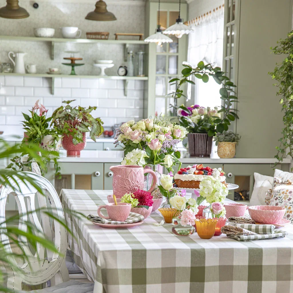 Her møtes du av myke pasteller, blomstrende mønstre og ulike teksturer. Det er alltid plass til en bukett med friske snittblomster og gjerne litt vilt grønt som får henge lekent over kanten på blomsterpotta. Den romantiske stilen er det moderne uttrykket for cottagecore – en hyllest til livet på landet, men med mer farge, personlighet og sjarm. Alt får ta plass – gjerne samtidig. Det er overdådig og helt, helt herlig…