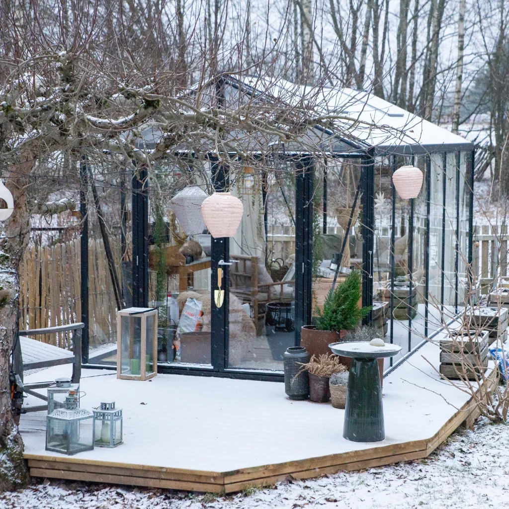 Hvem sier drivhuset kun er for vekst? Tanja viser deg at du kan skape en lun oase midt i vinterkulda. Tenn et lys, ta med et saueskinn, og finn roen. Slik forlenger du hagesesongen og får et fristed når frosten biter!