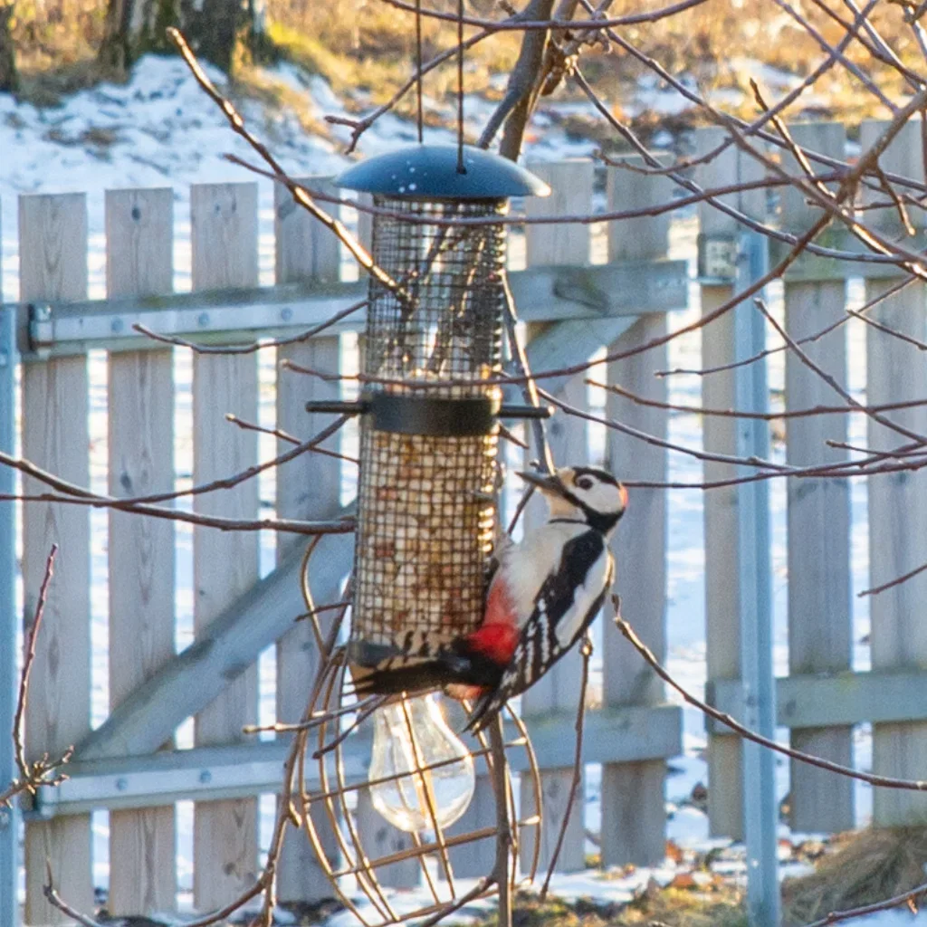 Når vinteren er på sitt kaldeste, skaper du enkelt liv og røre i hagen! Hvilken glede det er å følge med på fuglelivet, spesielt når en flott hakkespett kommer på besøk. Gi fuglene variert mat, så får du se hele artsspekteret på nært hold!